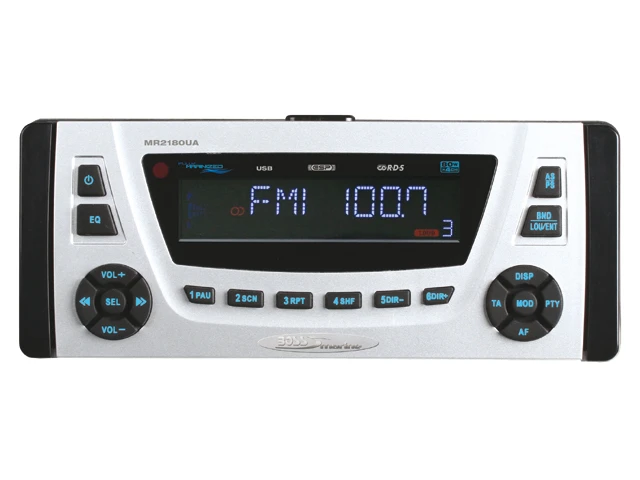 MP3/CD AM/FM RDS Receiver, für Einbauschacht 1-1/2″ DIN.USB und AUX-Anschluß auf der Rückseite.Eigenschaften:• AM/FM Tuner mit PLL Synthesizer• umschaltbar USA/Europa Funkfrequenzen• RDS (Radio Data System)• WMA/MP3/CDR und CDRW kompatibel• USB Eingang Rückseite• AUX-Eingang Rückseite• kompatibel mit Audio-Ausgang des iPod® oder anderen MP3 Playern• Subwoofer Ausgang• Ausgangsleistung: 80W x 4 Kanäle• Stereo/Mono & Local/Distance Umschalter• Fernbedienung kabellos