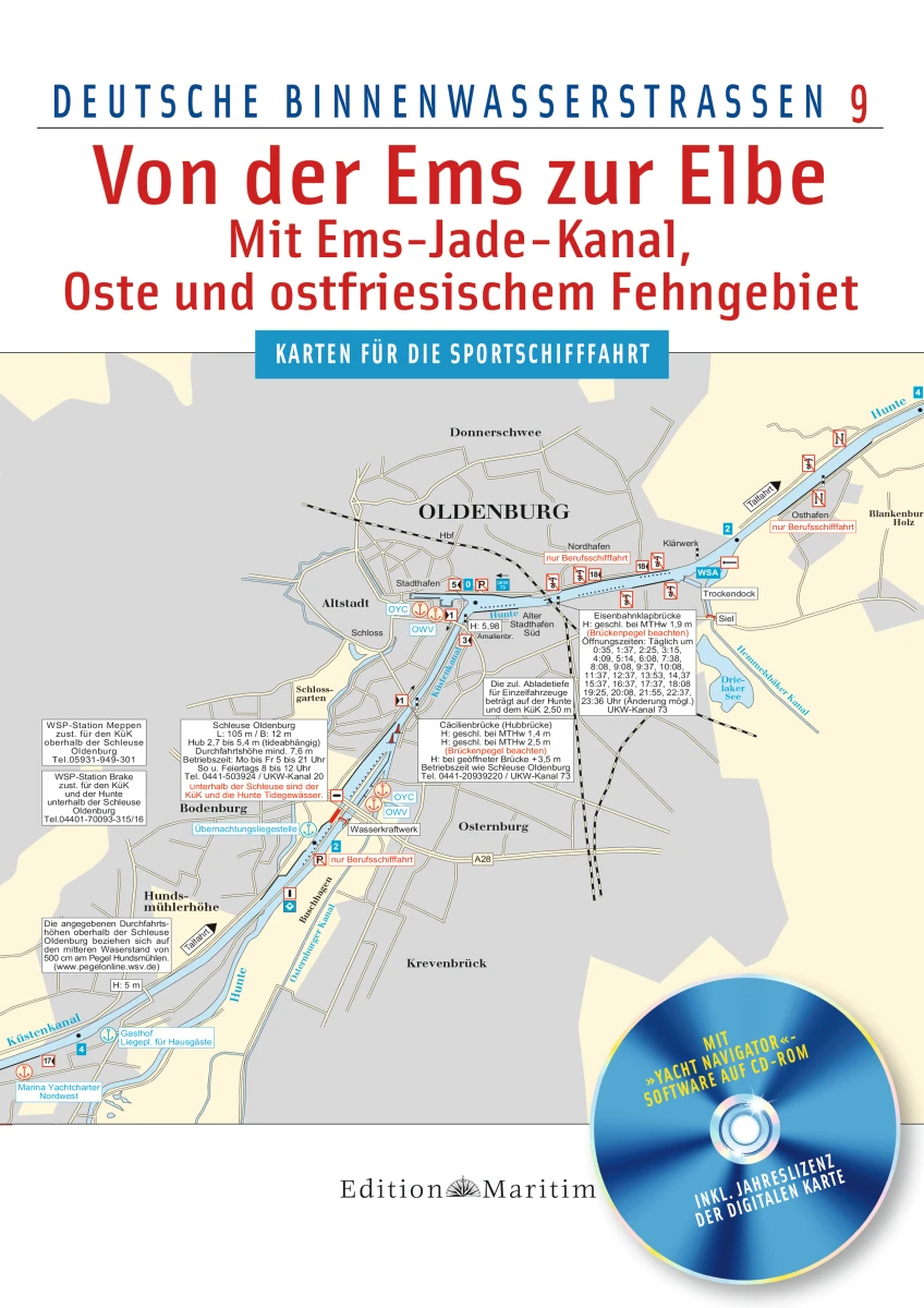 Von der Ems bis zur Elbe, Band 9 der Delius-Klasing-Reihe Deutsche Binnenwasserstraßen, enthält praktische A4-Karten im Maßstab 1:30 000 über das komplette Binnenschiffahrtsgebiet im deutschen Nordwesten. Inklusive: