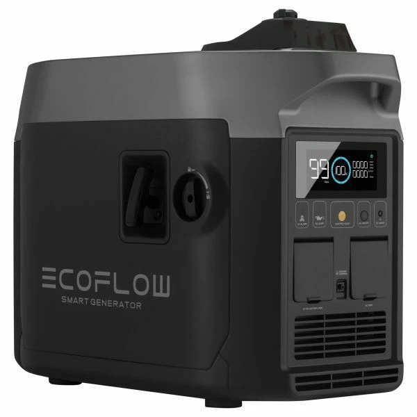 Der Smart Generator lädt alle mobilen Powerstations der EcoFlow DELTA Serie direkt über Gleichstrom und spart somit Kraftstoff ein und verkürzt die Ladezeit. Er verfügt über einen AC-Ausgang (reiner Sinus) um gleichzeitig weitere Verbraucher direkt mit Strom zu versorgen. Das Gerät besitzt einen elektrischen Starter, der es dem Benutzer ermöglicht den Smart Generator ebenfalls über die kostenlose EcoFlow App zu starten und zu steuern, ohne direkt das Gerät bedienen zu müssen. Des Weiteren kann festgelegt werden, bei welcher Batteriekapazität sich der Smart Generator, wenn eine Powerstation verbunden ist, automatisch ein- bzw. wieder ausschaltet. Mit dem 4 Liter Benzintank erreicht der Smart Generator eine Betriebsdauer unter Volllast von ca. 3,5 Stunden. Mit einer Ausgangsleistung von bis zu 1.800 Watt sind Sie für jede Notfallsituation bestens gerüstet. Der EcoFlow Smart Generator vereinfacht die Notstromversorgung durch ein LCD-Display, einen CO-Alarm und automatische Abschaltung sowie einen Kraftstoffalarm.