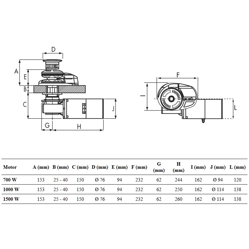 Empfohlen für Bootgrösse 8-13 m Die Kettennuss ist ausgelegt für 10mm Ketten sowie 16mm starkes Tauwerk. Das Gehäuse besteht aus Bronze das Kugellager ist komplett aus Edelstahl Ein Sensor am Motor ermöglicht einen direkten Anschluss an einem Lofrans Ketten zählwerk. Die Motorleistung beträgt 1000W kurzfristig 1500W das entrspricht einer maximalkraft von 1000KG