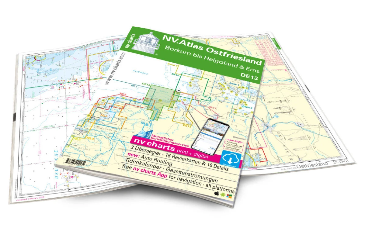 Mit den aktuellen Seekarten des Kartensatzes DE 13 sind Sie optimal für die navigatorischen Herausforderungen an der deutschen Nordseeküste gerüstet und Tide und Strömungsinformationen sind in dem handlichen Atlas ebenso enthalten wie der Zugang zur nv charts App.