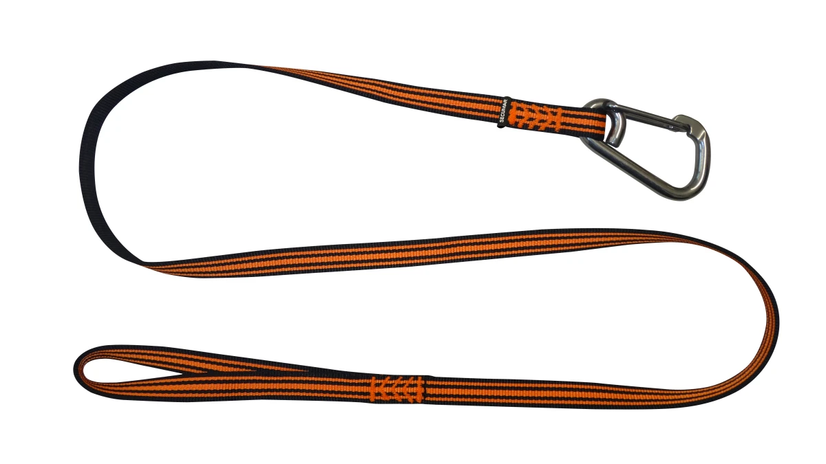 Secumar Lifeleine Junior mit einen Karabiner von Wichard und Schlaufe, DIN EN ISO 12401 schwarz/orange, für Kinder bis 50 kg