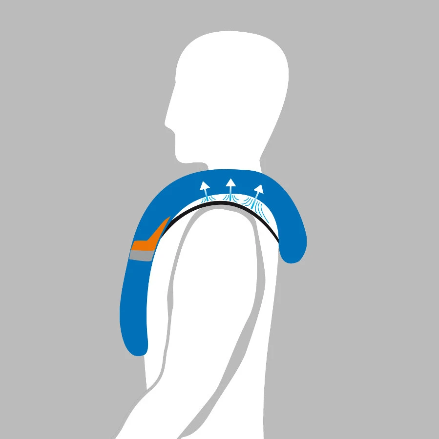 Eine Kombination von zwei Konstruktionselementen macht das möglich. Zum einen wird eine neu designte gepolsterte Tragekonstruktion eingeführt: das SECUMAR „Hover-System“. Dieses ermöglicht eine gleichmäßige Gewichtsverteilung der Rettungsweste auf Schultern, Rücken und Brust. Die Rettungsweste schwebt quasi in der Luft. Nur die gepolsterten Gurte liegen auf den Schultern. Das Hover-System ermöglicht zudem eine bessere Luftzirkulation gegen Wärmestau. Zum anderen ist die Rettungsweste im Nackenbereich vorgeformt, sodass die Schutzhülle nicht mehr am Hals anliegt.
