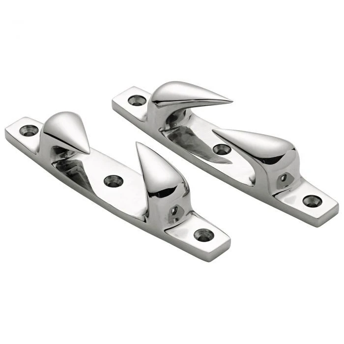 Ein praktisches Paar robuster Lippklampen aus Edelstahl Rostfrei, mit je drei Bohrlöchern zur einfachen und sicheren Befestigung.