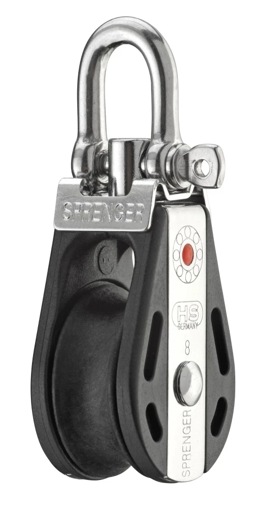 – leichtlaufendes Kugellager – Bruchlast: 600 kg – Arbeitslast: 150 kg – für max. 8 mm Tauwerk