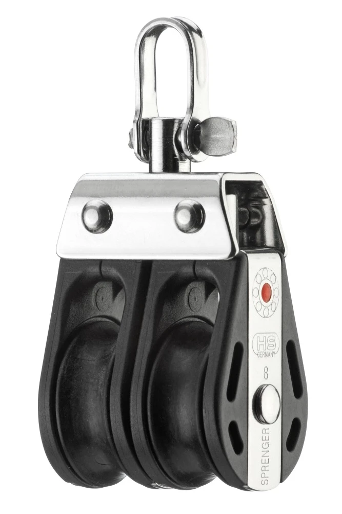 – leichtlaufendes Kugellager – Bruchlast: 600 kg – Arbeitslast: 150 kg – für max. 8 mm Tauwerk