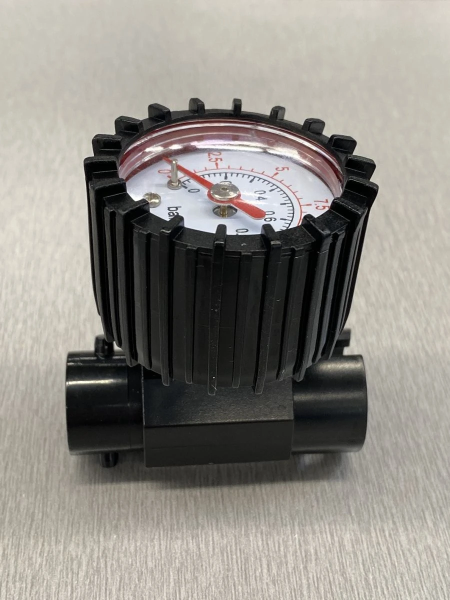 Talamex Druckanzeige für Handpumpe. Wird zwischen Schlauch und Pumpe mittels Bajonett-Anschluss angebracht.