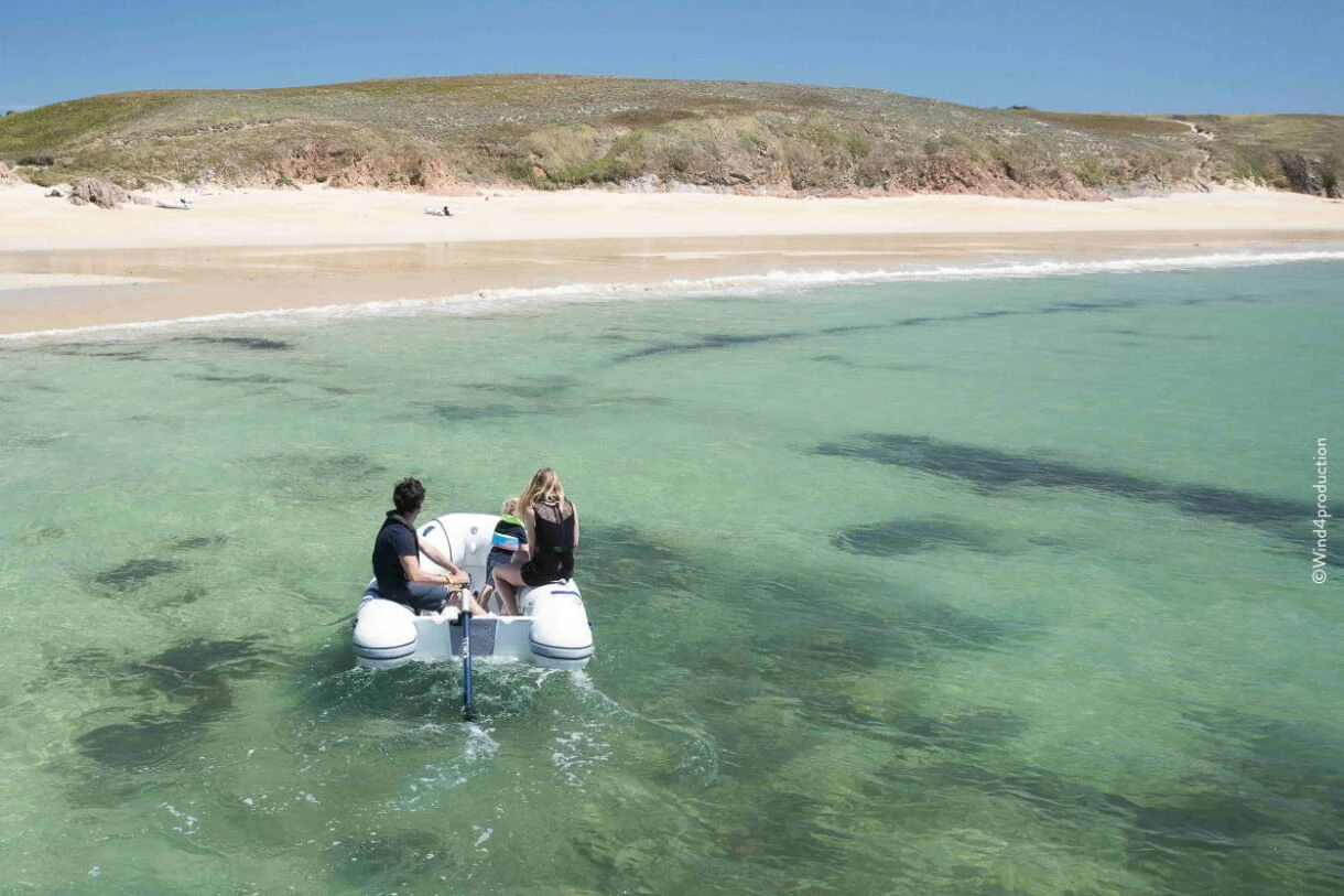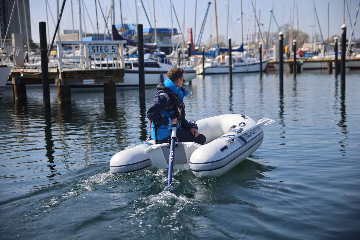 Mit seinen 20 cm Tiefgang kann man sich jedem Strand nähern und sein Beiboot „beachen“, ohne Gefahr zu laufen, es zu beschädigen.