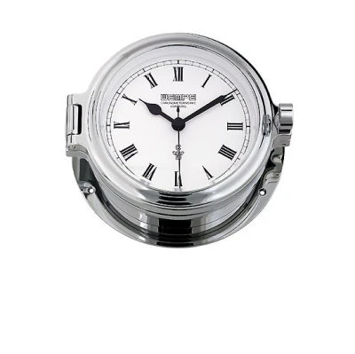 Cup CHROM BULLAUGENUHR Massives Messinggehäuse Ø 140mm, hochglanz verchromt, Quarz Batteriewerk, Zifferblatt weiß mit röm. Zahlen.