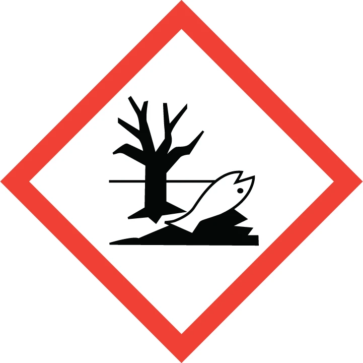 H225 Flüssigkeit und Dampf leicht entzündbar. H315 Verursacht Hautreizungen. H319 Verursacht schwere Augenreizung. H336 Kann Schläfrigkeit und Benommenheit verursachen. H411 Giftig für Wasserorganismen, mit langfristiger Wirkung. P102 Darf nicht in die Hände von Kindern gelangen. P210 Von Hitze, heißen Oberflächen, Funken, offenen Flammen sowie anderen Zündquellenarten fernhalten. Nicht rauchen. P261 Einatmen von Staub/Rauch/Gas/Nebel/Dampf/Aerosol vermeiden. P271 Nur im Freien oder in gut belüfteten Räumen verwenden. P273 Freisetzung in die Umwelt vermeiden. P280 Schutzhandschuhe/Schutzkleidung/Augenschutz/Gesichtsschutz tragen. P303 + P361 + P353 BEI BERÜHRUNG MIT DER HAUT (oder dem Haar): Alle kontaminierten Kleidungsstücke sofort ausziehen. Haut mit Wasser abwaschen/duschen. P305 + P351 + P338 BEI KONTAKT MIT DEN AUGEN: Einige Minuten lang behutsam mit Wasser spülen. Eventuell vorhandene Kontaktlinsen nach Möglichkeit entfernen. Weiter spülen. P312 Bei Unwohlsein GIFTINFORMATIONSZENTRUM/Arzt/… anrufen. P370 + P378 Bei Brand: KEIN Wasser zum Löschen verwenden. P391 Verschüttete Mengen aufnehmen. P403 + P233 An einem gut belüfteten Ort aufbewahren. Behälter dicht verschlossen halten. P405 Unter Verschluss aufbewahren. P501 Inhalt/Behälter einer anerkannten Abfallentsorgungsanlage zuführen.